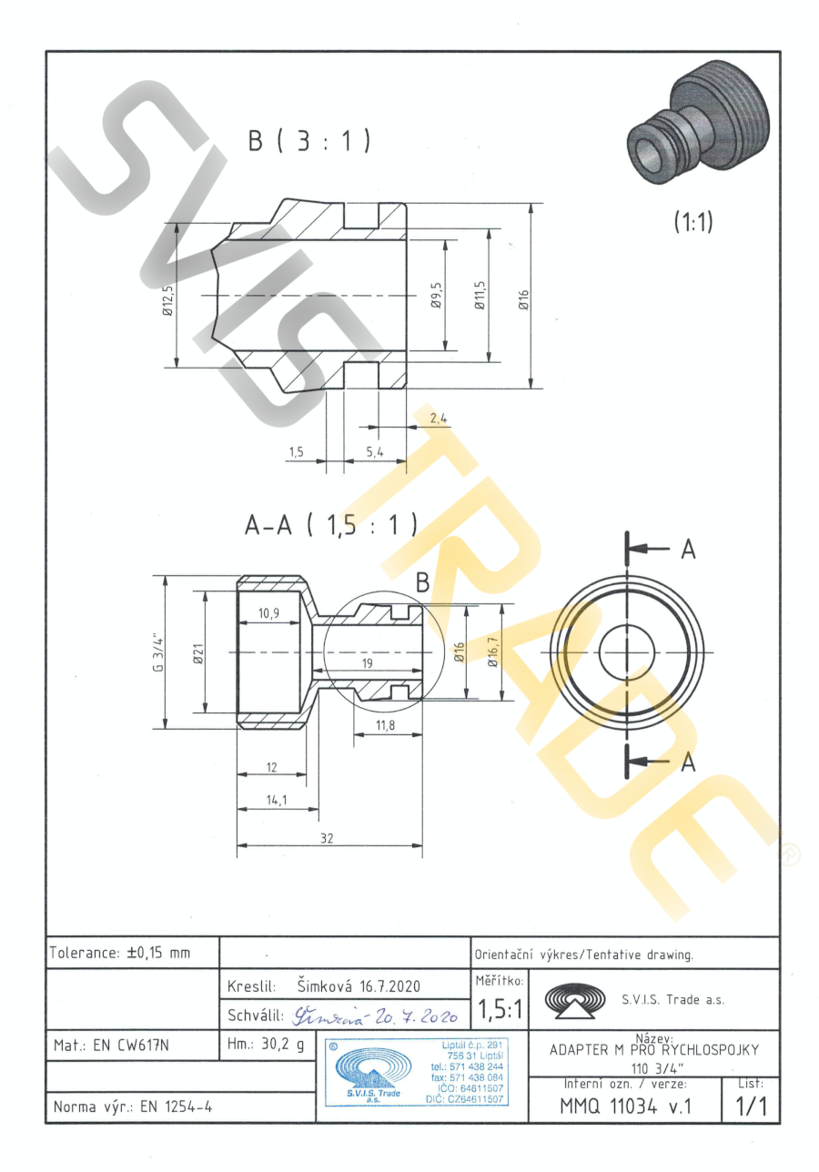 | Norme: | ČSN EN 10242, ČSN ISO 7-1 |