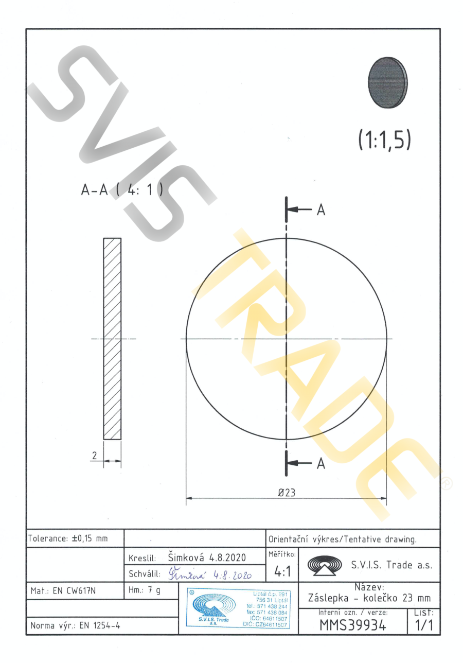 Ravna prirubnica - 399 MMS - STANDARD. Izrađen prema EN 1254-4 - ravna mesingana prirubnica - kotačić. Pogodan je za kao spoj za uložak matice vijaka i slavine, npr. Kod zamjene radijatora. Bez površinske obrade.