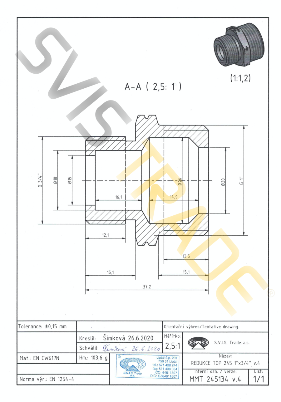 | Norme: | ČSN EN 10242, ČSN ISO 7-1 |