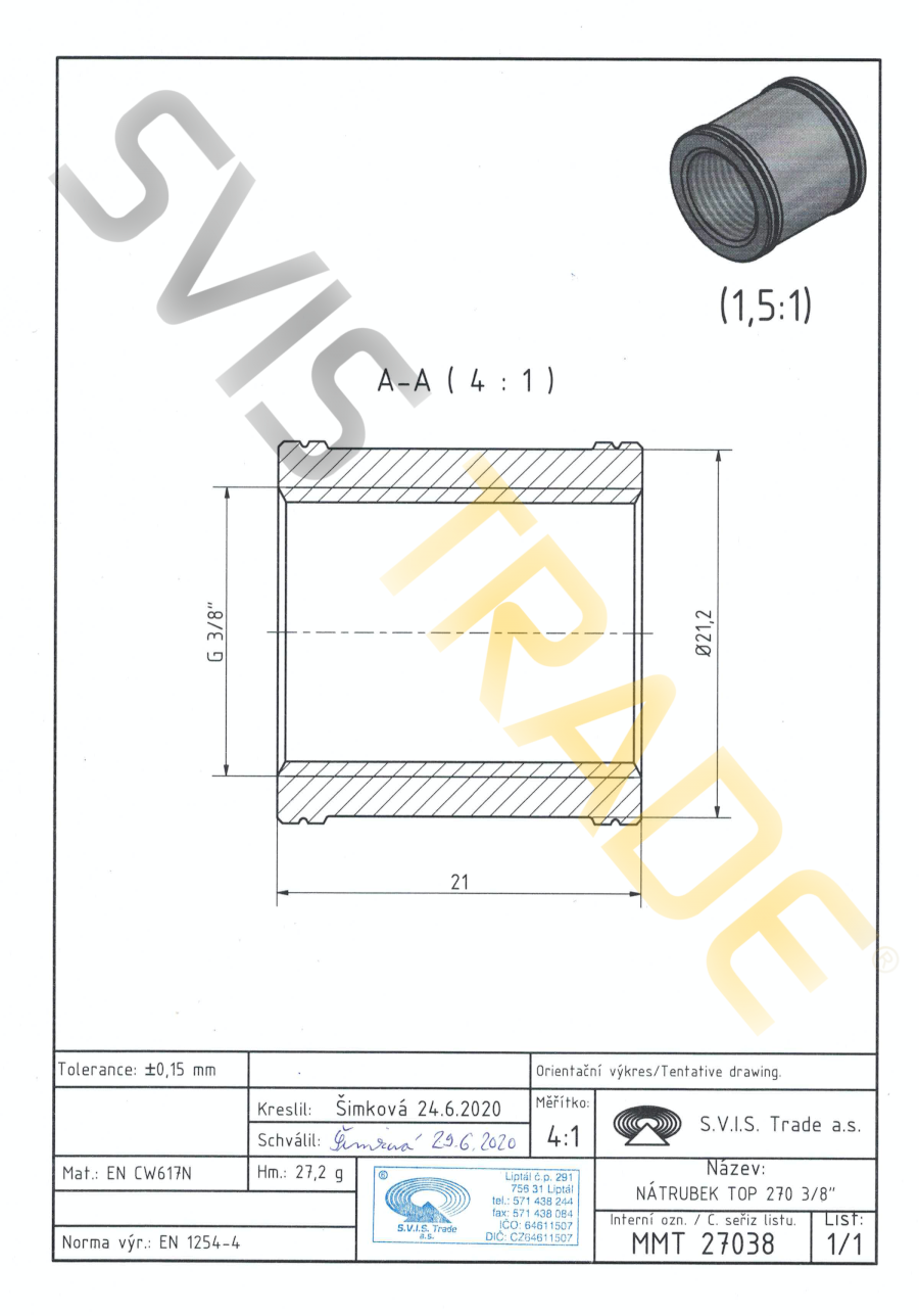| Norme: | ČSN EN 10242, ČSN ISO 7-1 |