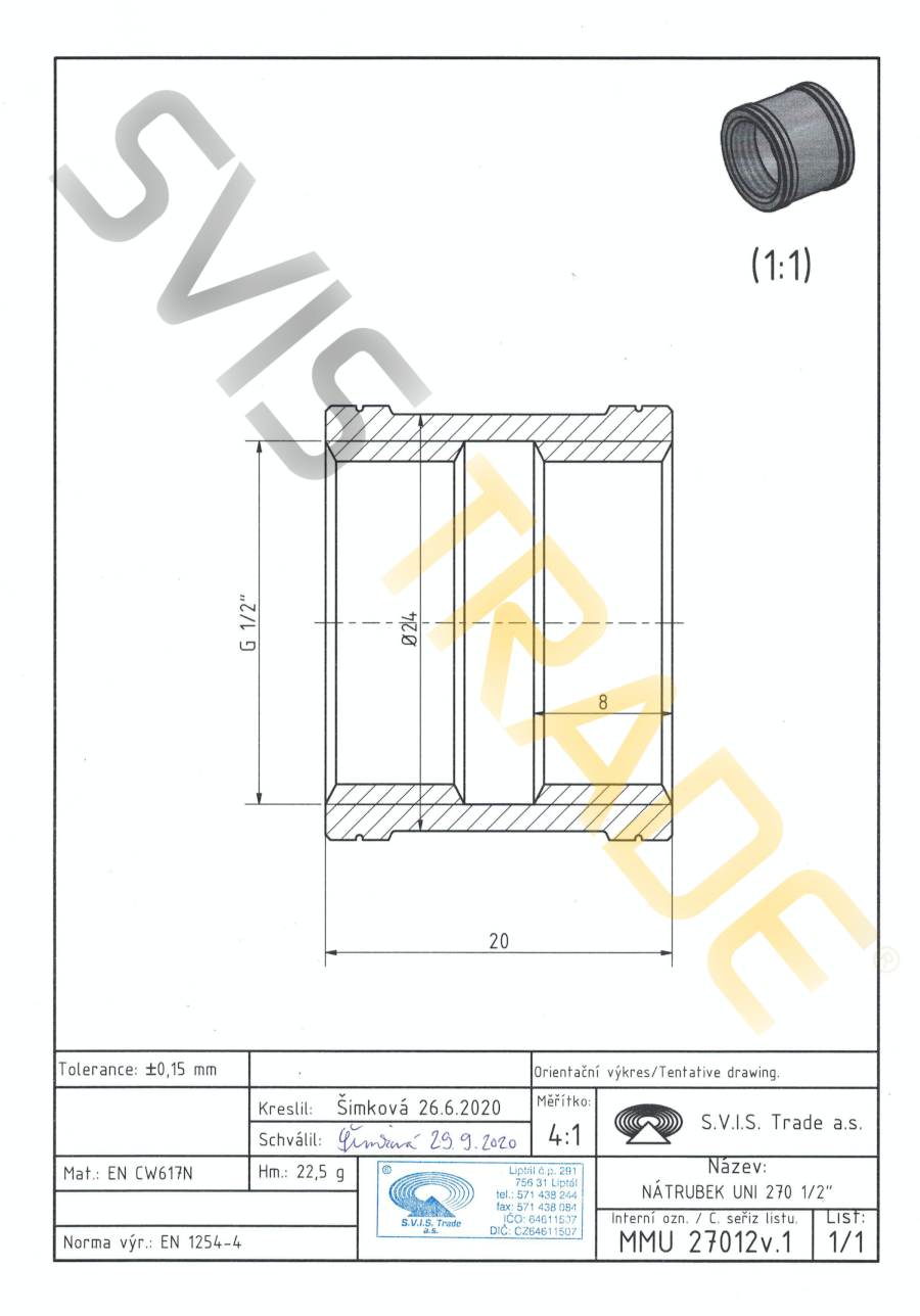 | Norme: | ČSN EN 10242, ČSN ISO 7-1 |