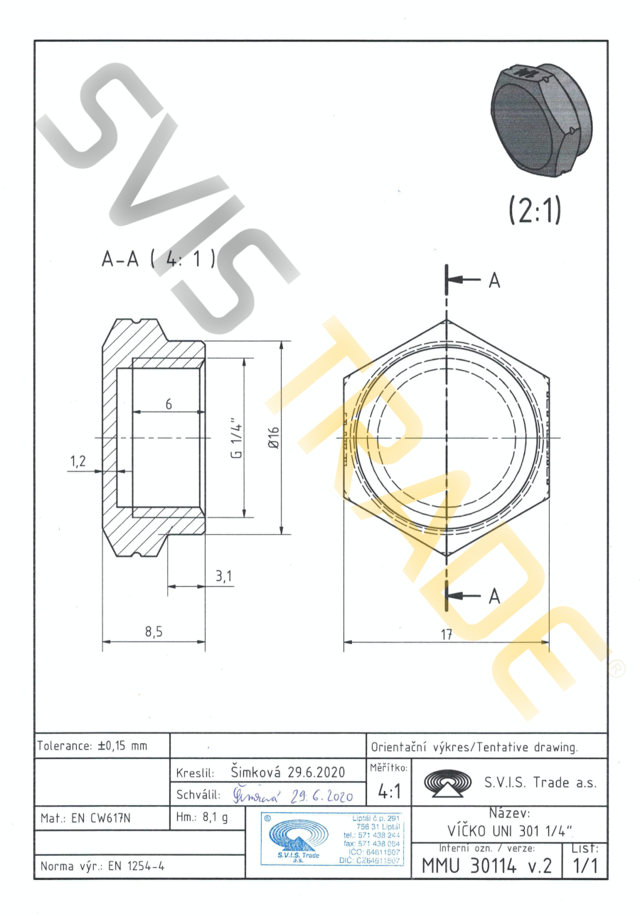 | Norme: | ČSN EN 10242, ČSN ISO 7-1 |