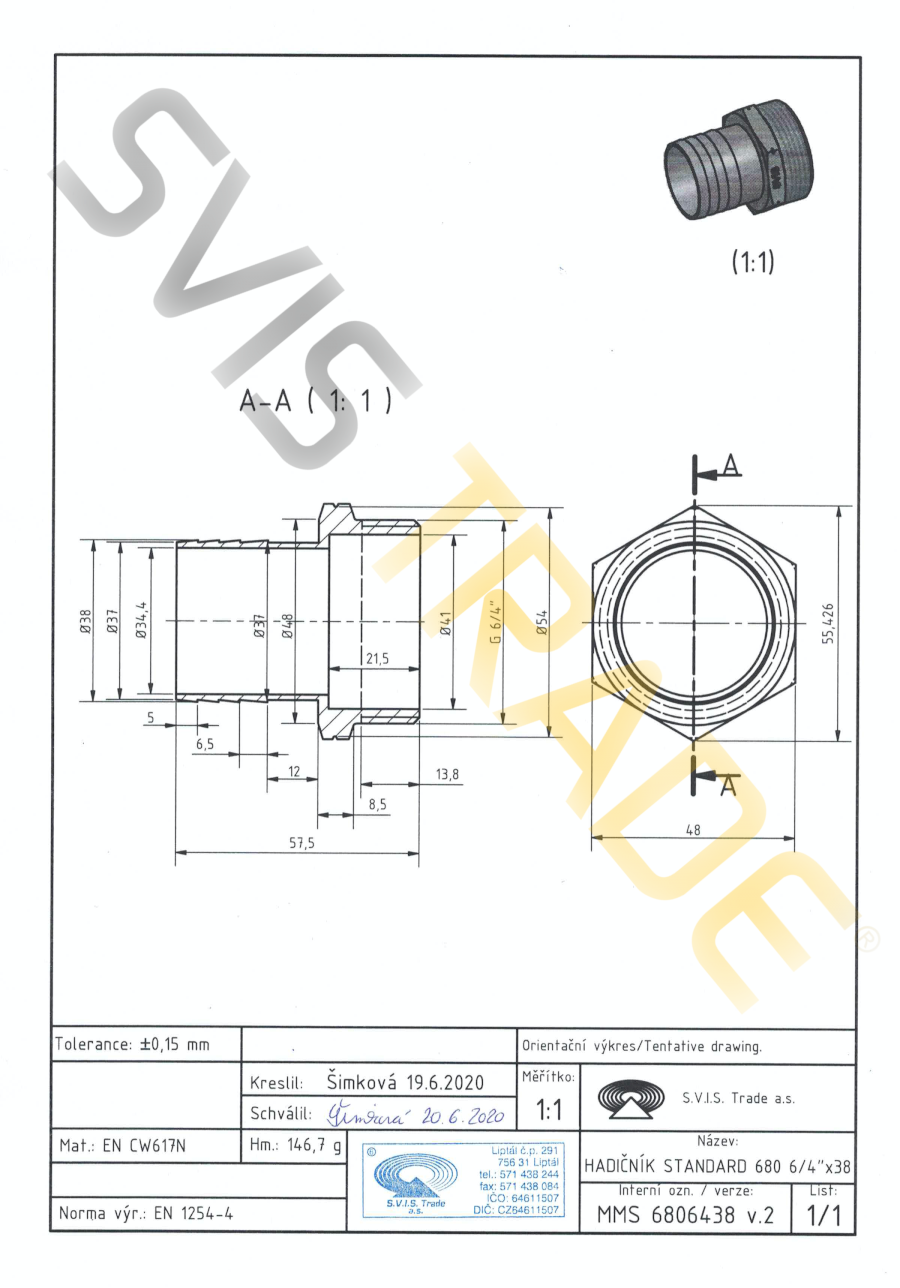 Sárgaréz idom CW617N. ISO 228-1 as norma szerint meghatározott menetes kapcsolásokra alkalmas. Felületi kezelés nélkül.