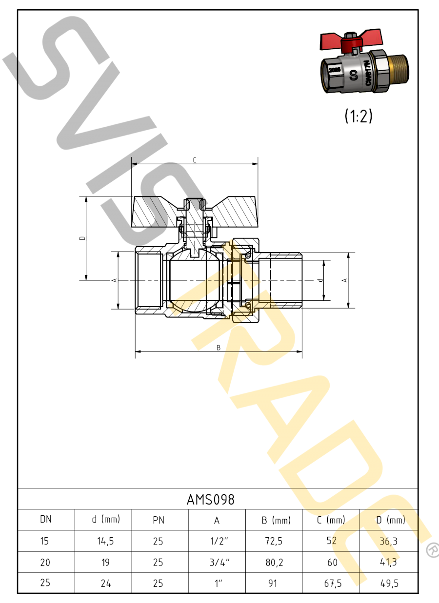Kiváló minőségű nikkelezett sárgarézből készült, ivó- és közművíz-szereléshez alkalmas (max. 50% glikol oldat vízzel).