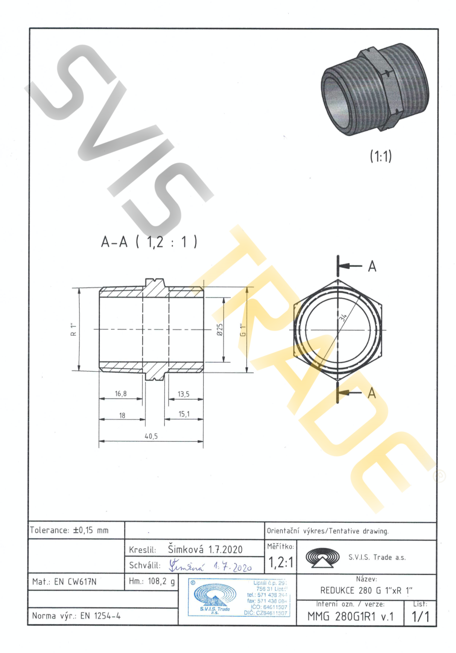 | Norme: | ČSN EN 10242, ČSN ISO 7-1 |