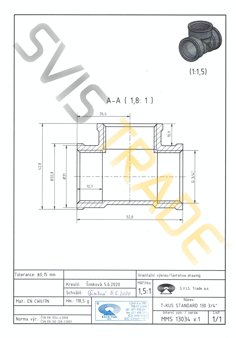| Norme: | ČSN EN 10242, ČSN ISO 7-1 |