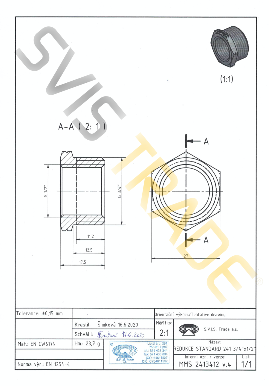 | Norme: | ČSN EN 10242, ČSN ISO 7-1 |