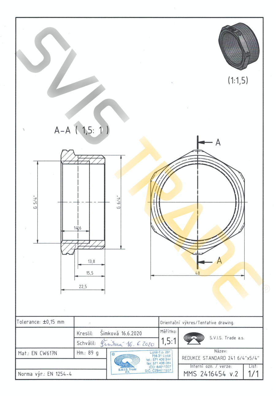 | Norme: | ČSN EN 10242, ČSN ISO 7-1 |