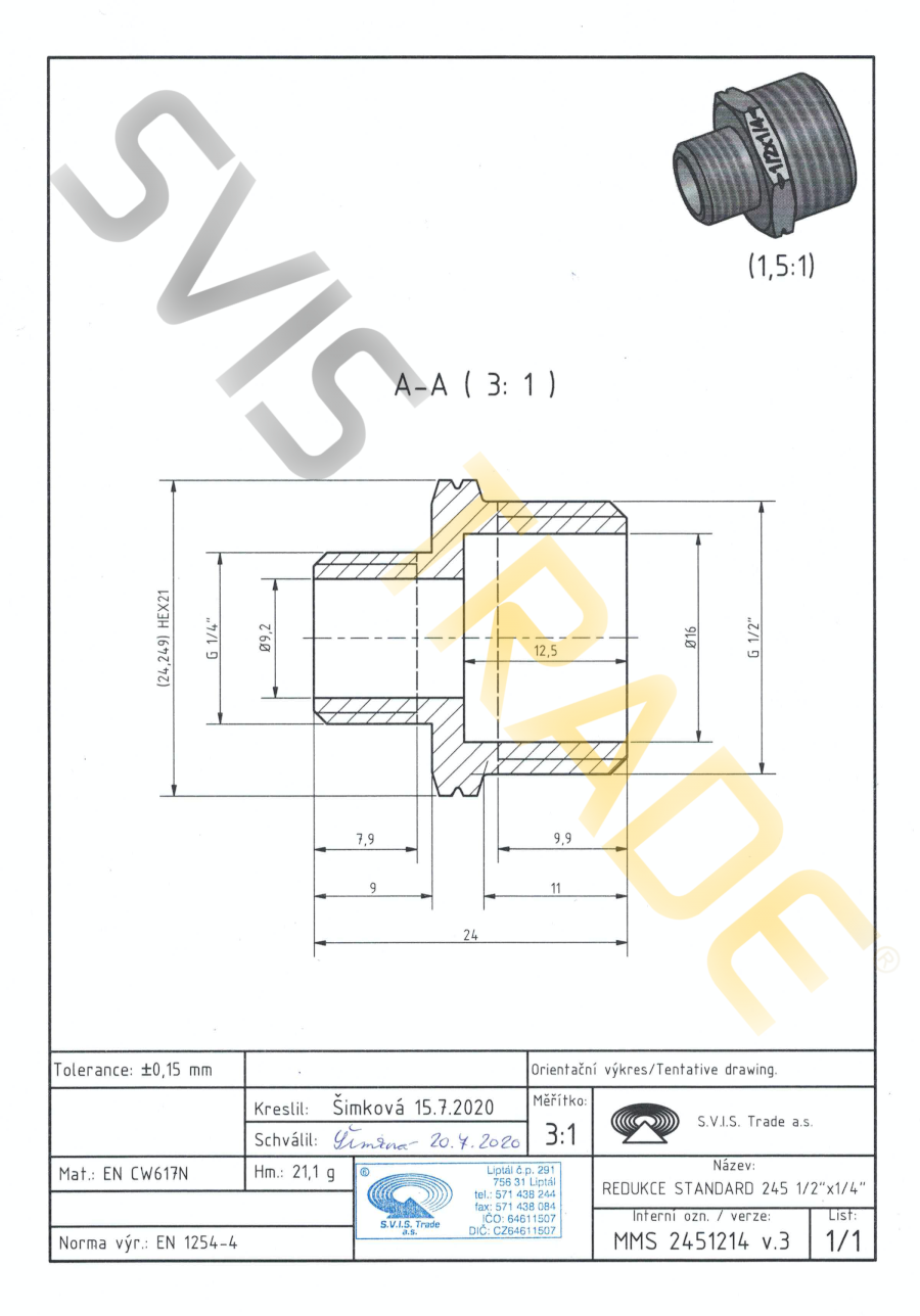| Norme: | ČSN EN 10242, ČSN ISO 7-1 |