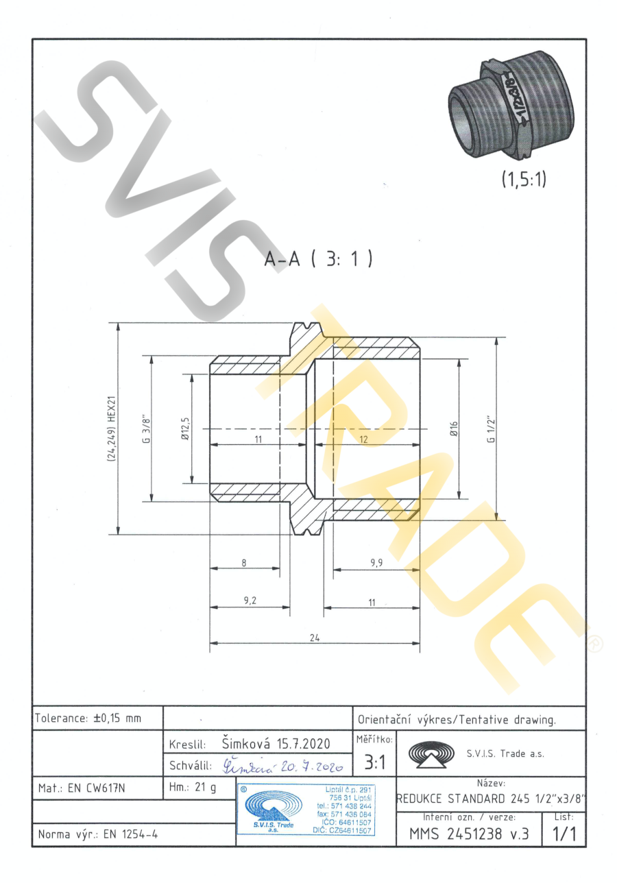 | Norme: | ČSN EN 10242, ČSN ISO 7-1 |