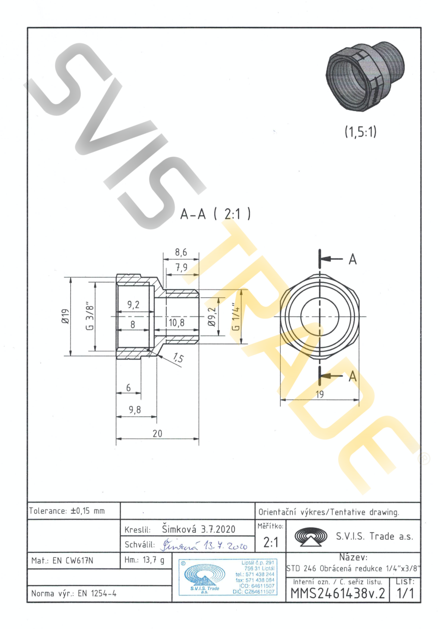 | Norme: | ČSN EN 10242, ČSN ISO 7-1 |