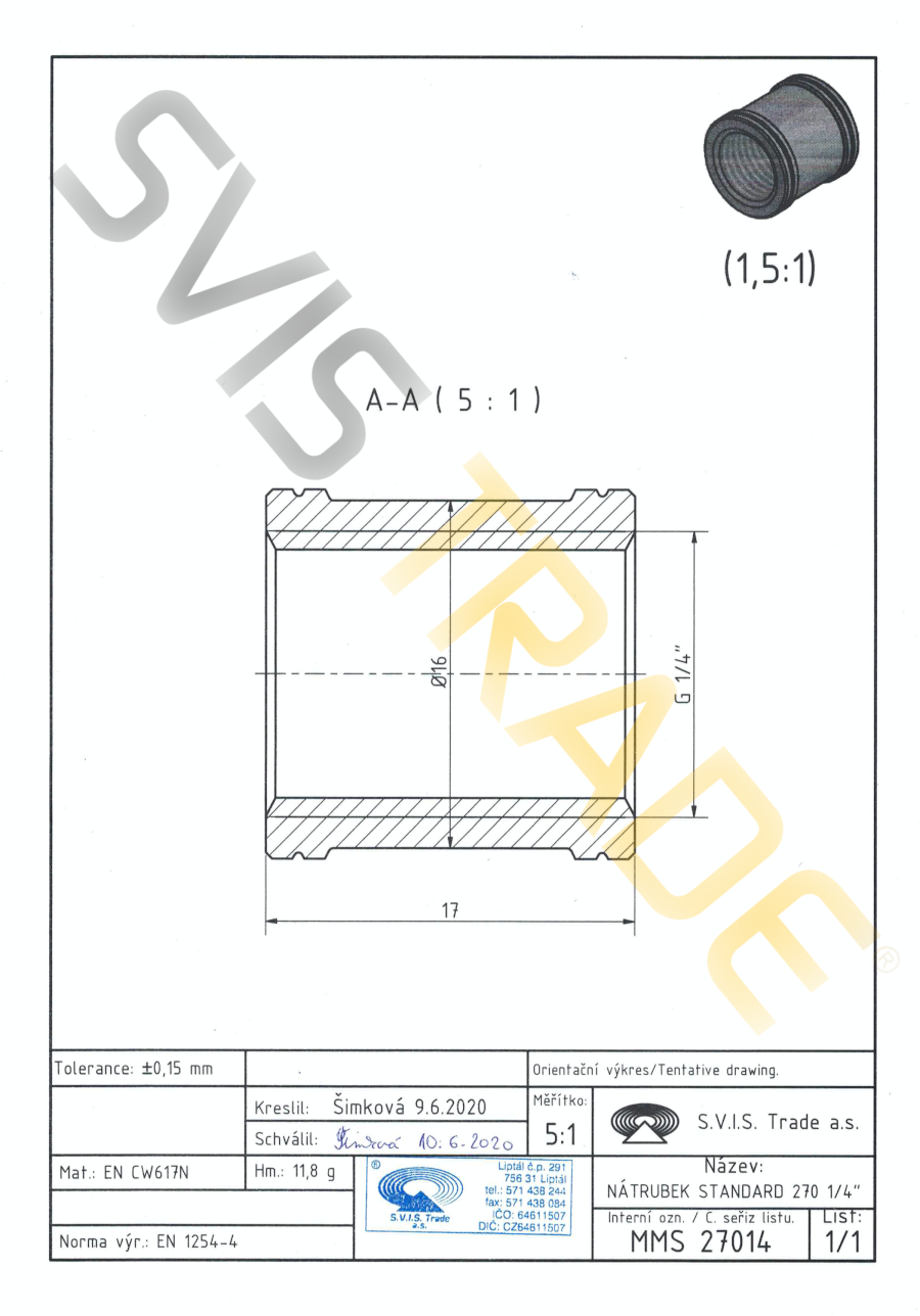 | Norme: | ČSN EN 10242, ČSN ISO 7-1 |