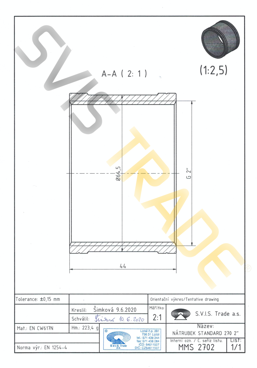 | Norme: | ČSN EN 10242, ČSN ISO 7-1 |