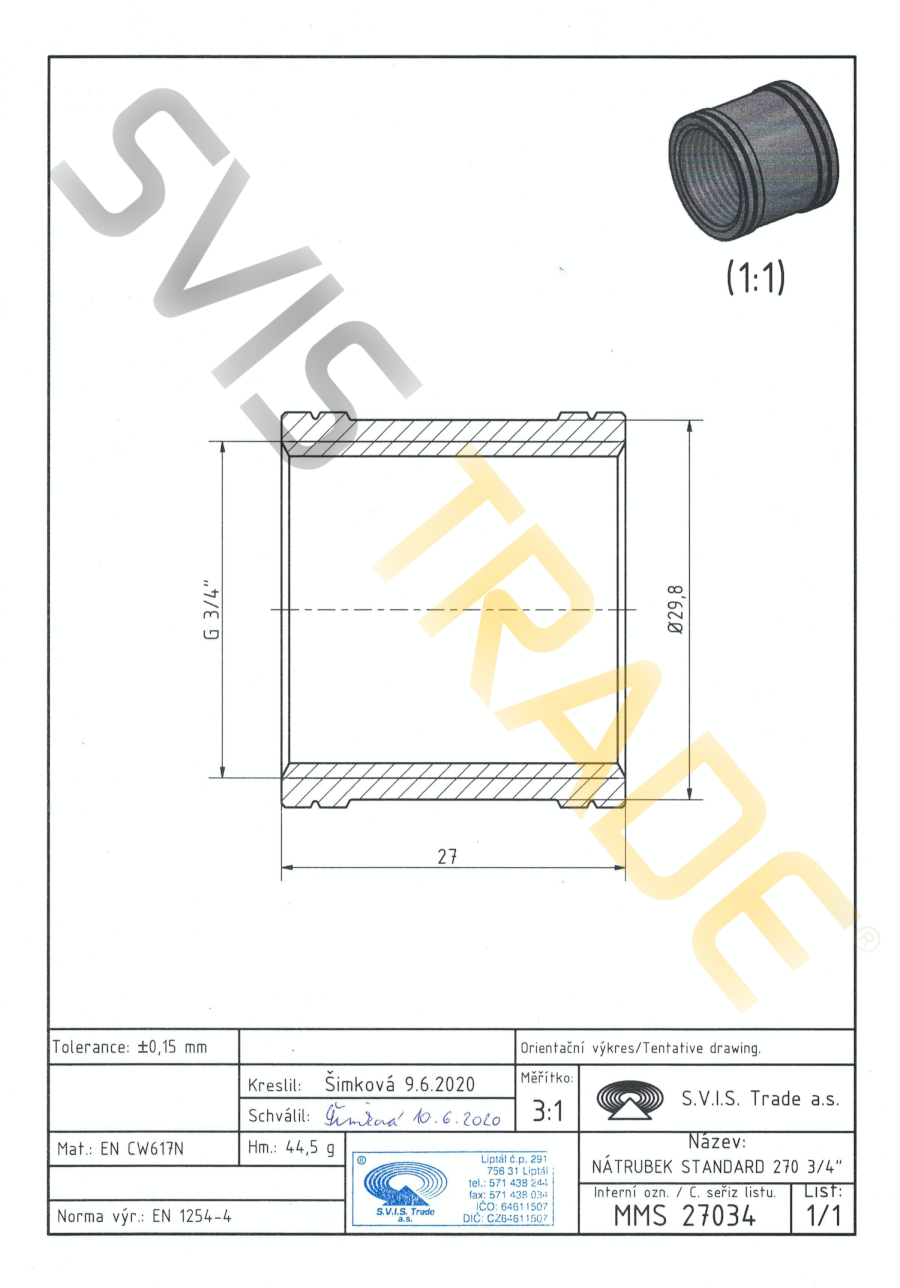 | Norme: | ČSN EN 10242, ČSN ISO 7-1 |