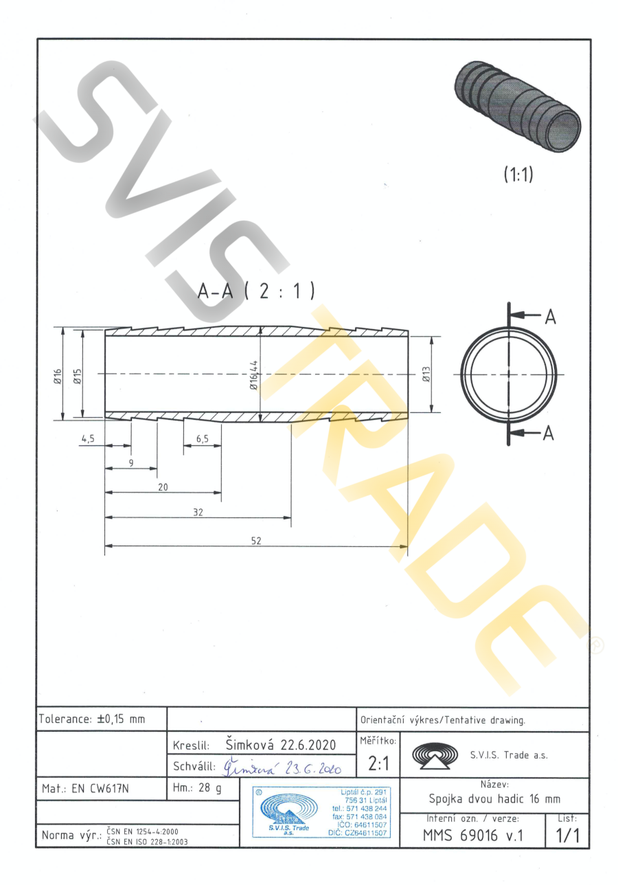 S.V.I.S. Comerț a.s. - producător ceh de accesorii este certificat ISO 9001, ISO 14001, OHSAS 18001. de fitinguri din alama sunt acoperite de asigurare pentru daune pe teritoriul UE.