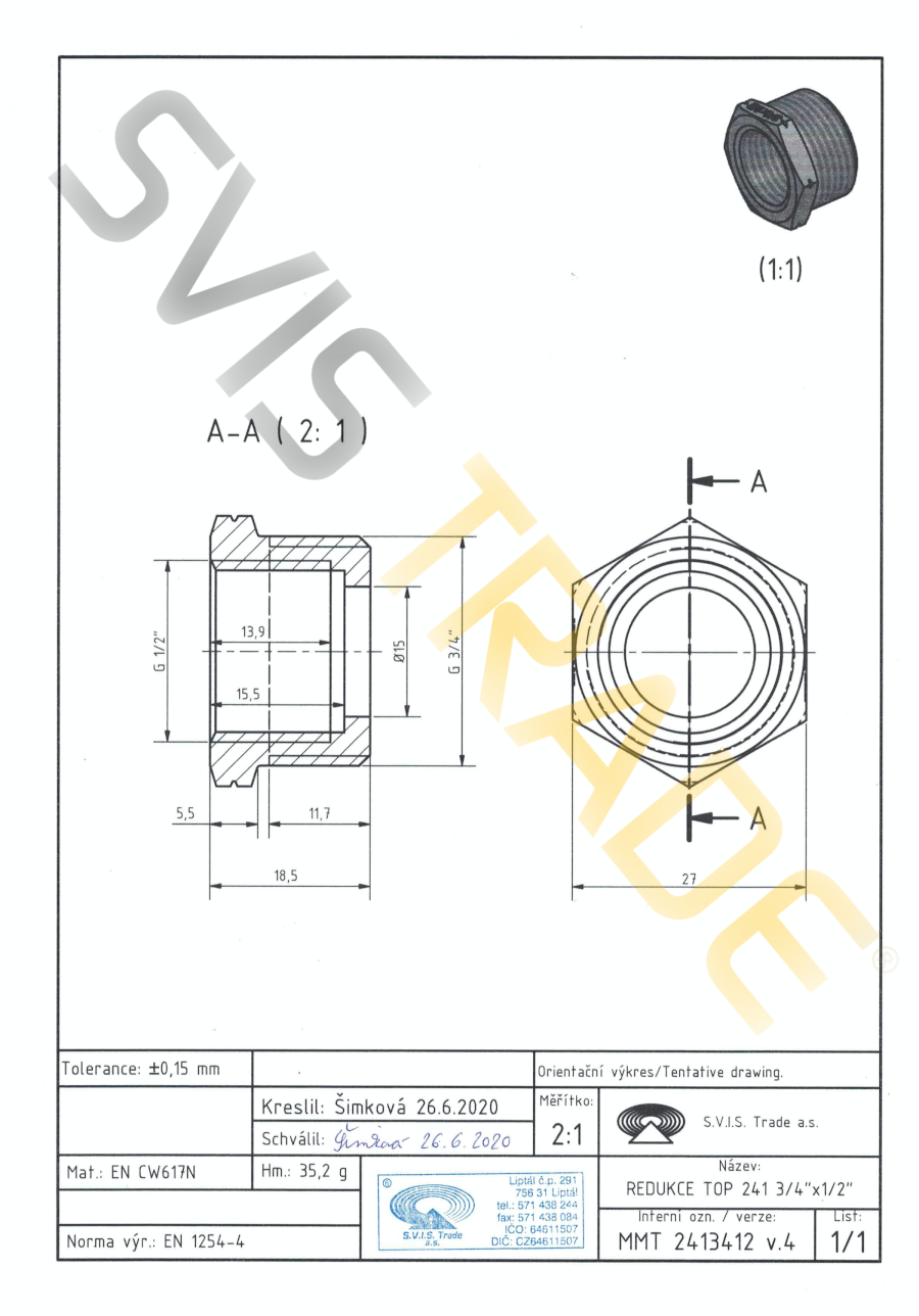 | Norme: | ČSN EN 10242, ČSN ISO 7-1 |