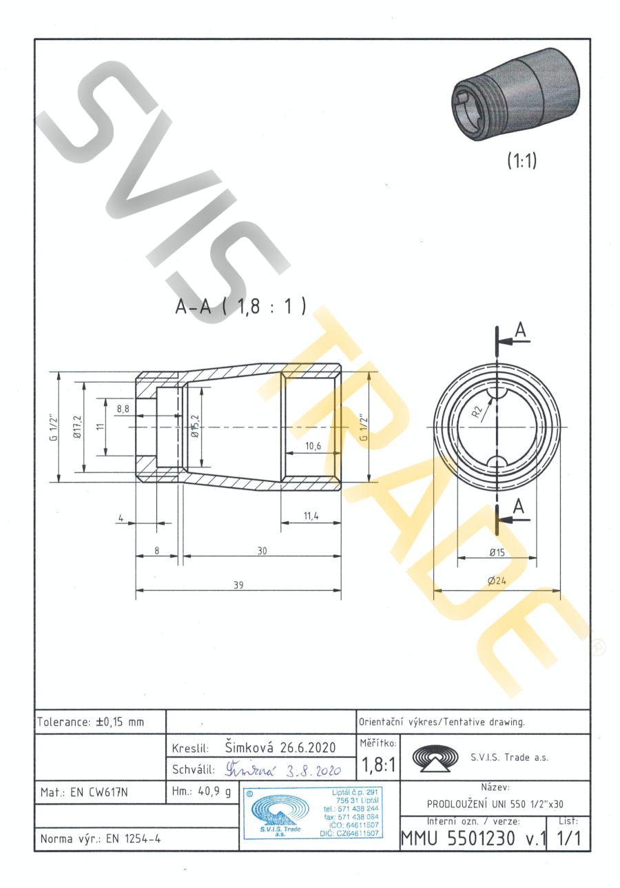 | Norme: | ČSN EN 10242, ČSN ISO 7-1 |