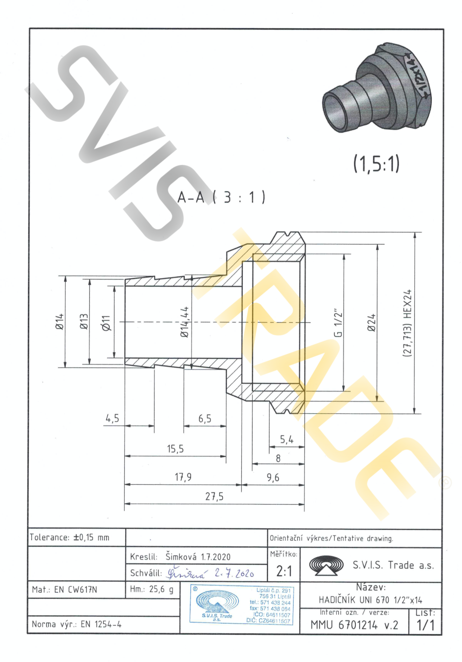 | Norme: | ČSN EN 10242, ČSN ISO 7-1 |