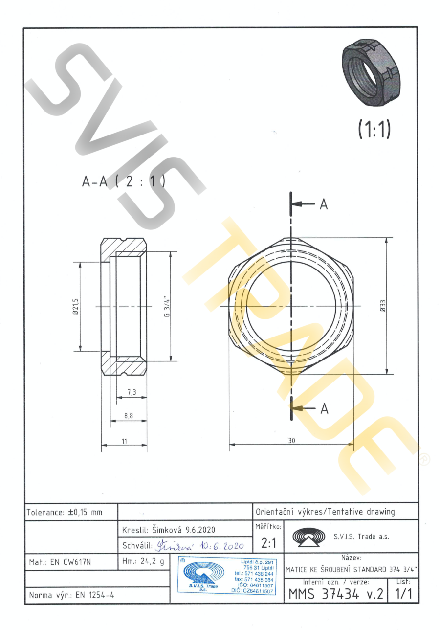 Tvarovka z mosadze CW617N. Určená pre spájanie so závitom ISO 228-1. Prevedenie: bez povrchovej úpravy.
