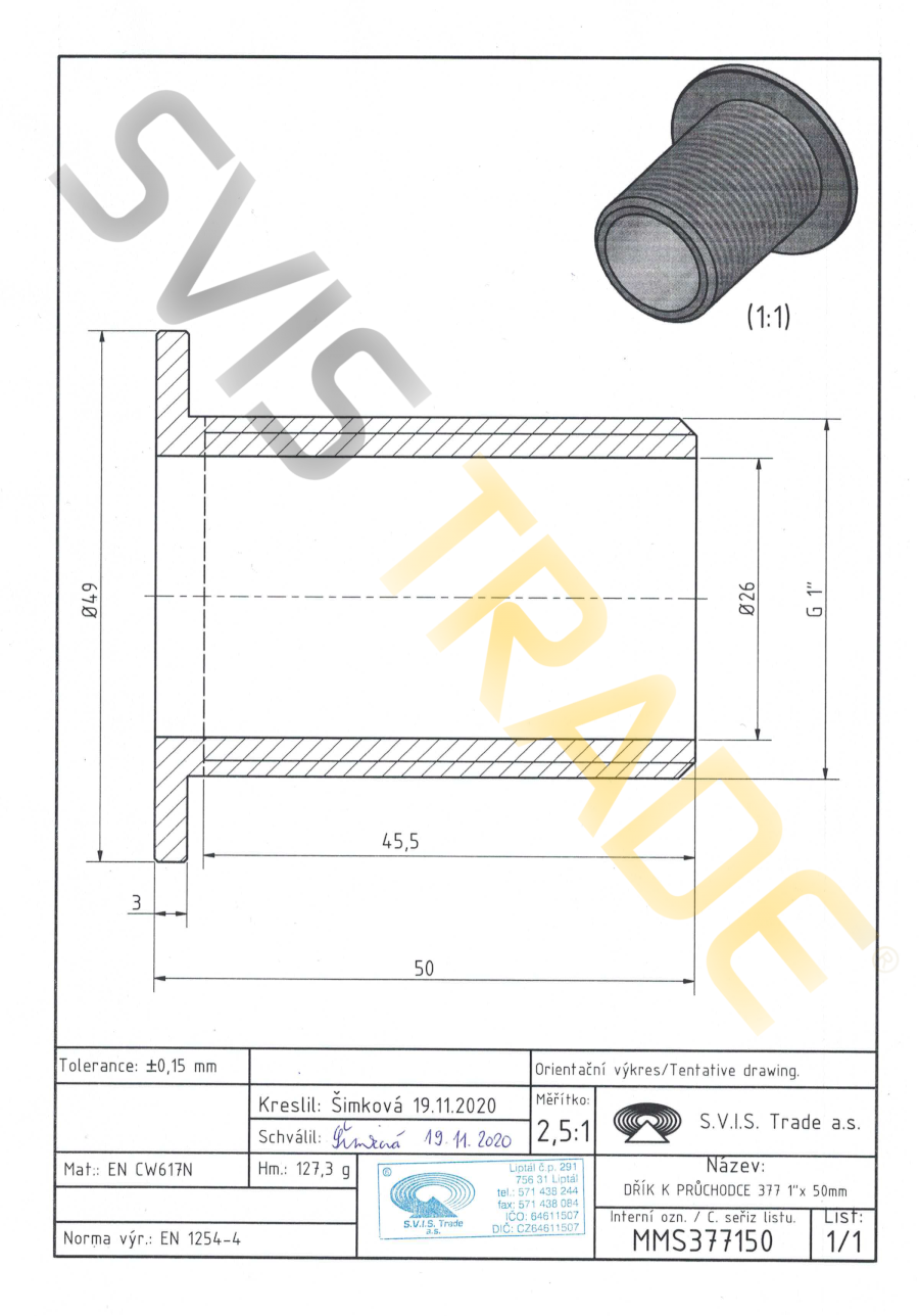 S.V.I.S. Trade a.s. - český výrobce fitinek je držitelem certifikátů ISO 9001, ISO 14001, OHSAS 18001. Na mosazné fitinky se vztahuje pojištění za škody pro území celé EU.