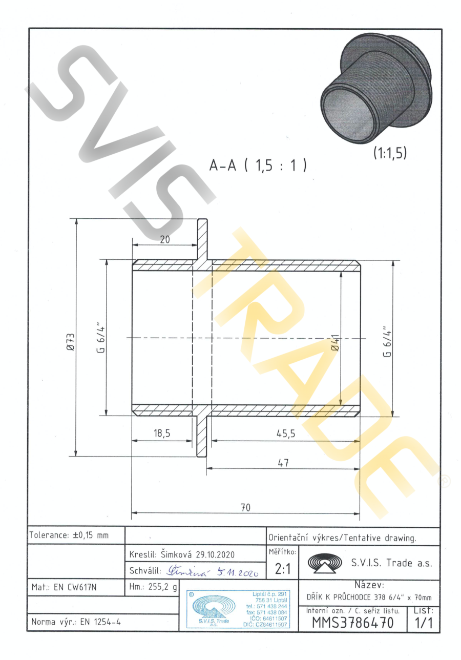 S.V.I.S. Trade a.s. - český výrobce fitinek je držitelem certifikátů ISO 9001, ISO 14001, OHSAS 18001. Na mosazné fitinky se vztahuje pojištění za škody pro území celé EU.