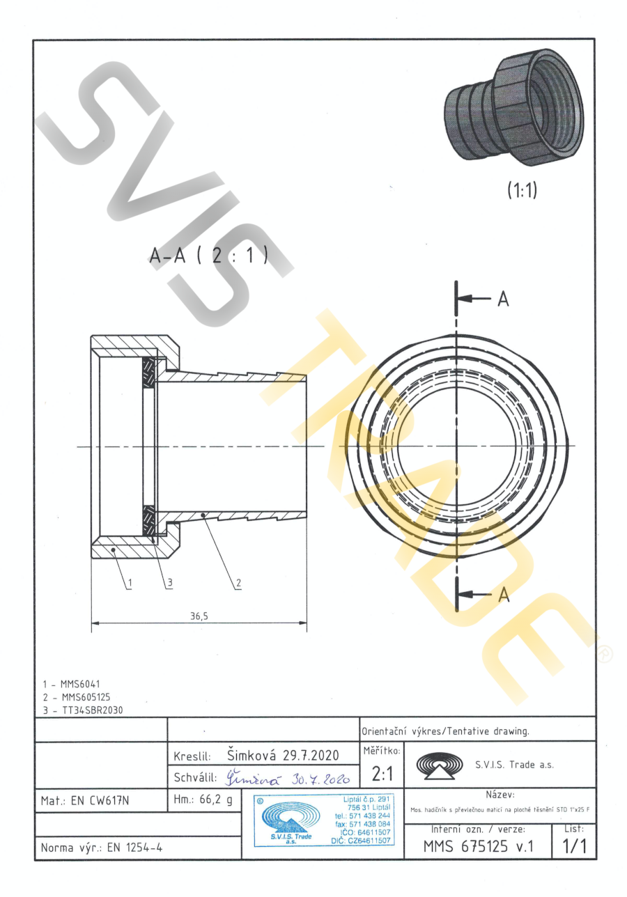 Tvarovka z mosadze CW617N. Určená pre spájanie so závitom ISO 228-1. Prevedenie: bez povrchovej úpravy.