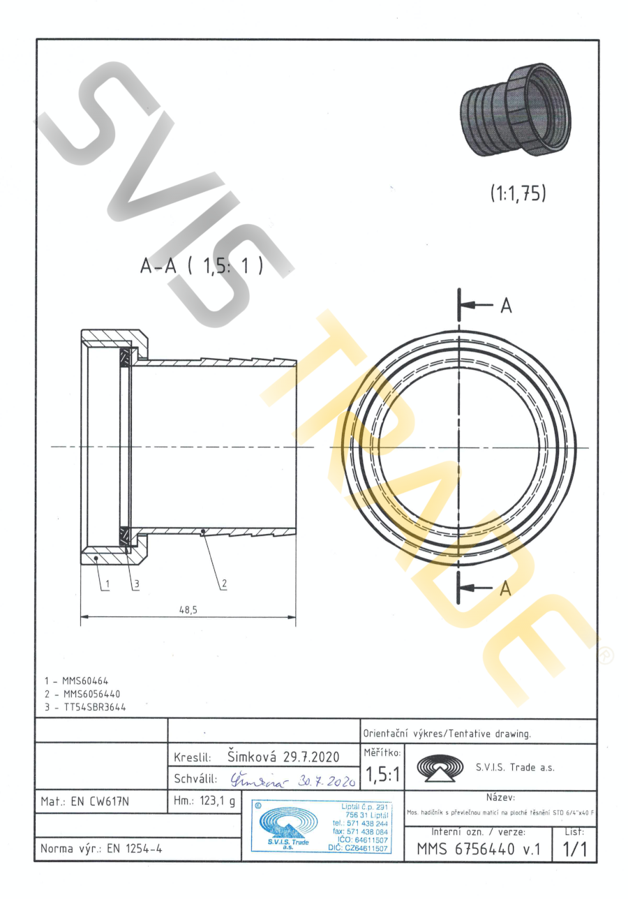 | Normy: | ČSN EN 1254-4, ČSN EN ISO 228-1 |