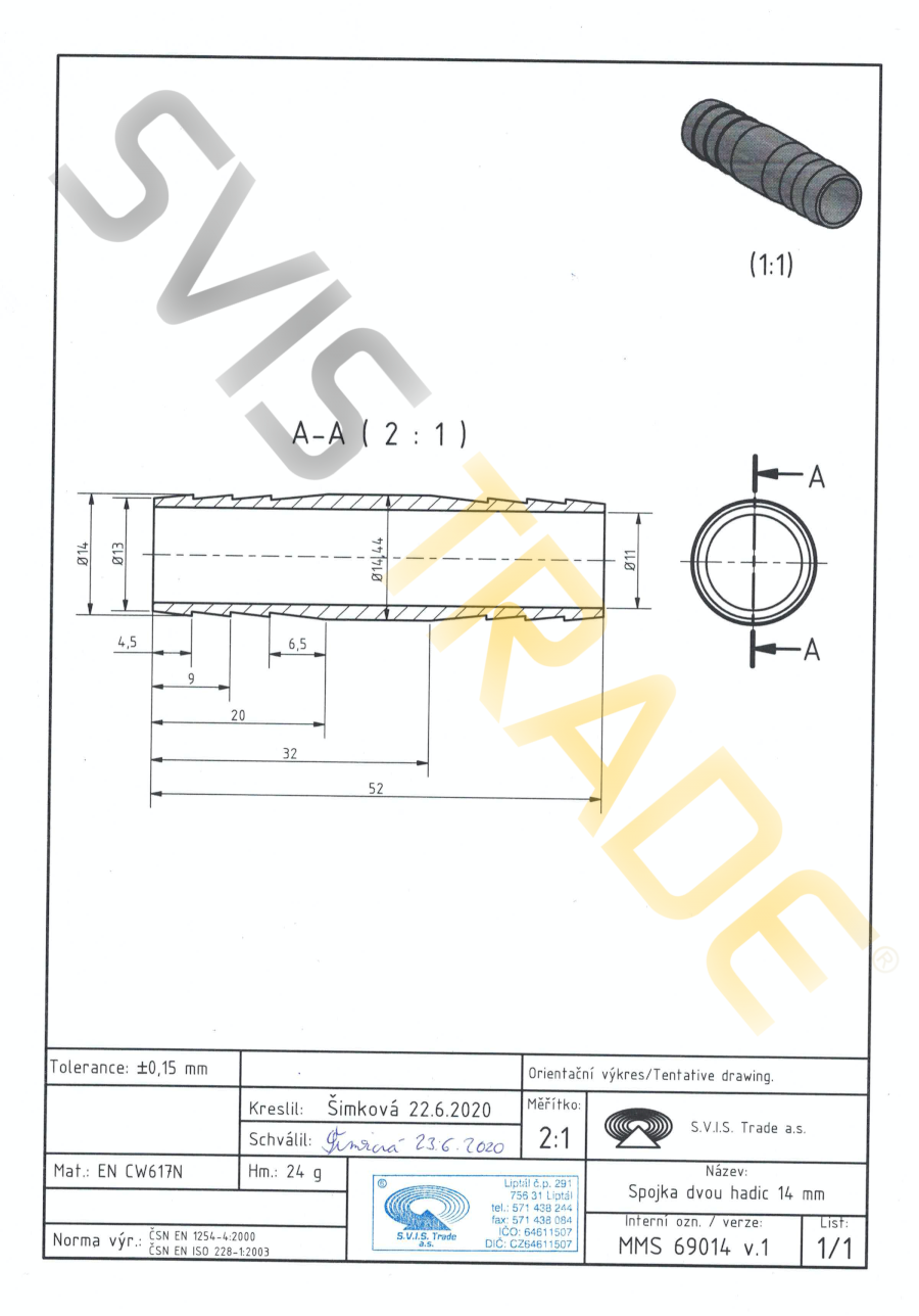 Tvarovka z mosadze CW617N. Určená pre spájanie so závitom ISO 228-1. Prevedenie: bez povrchovej úpravy.