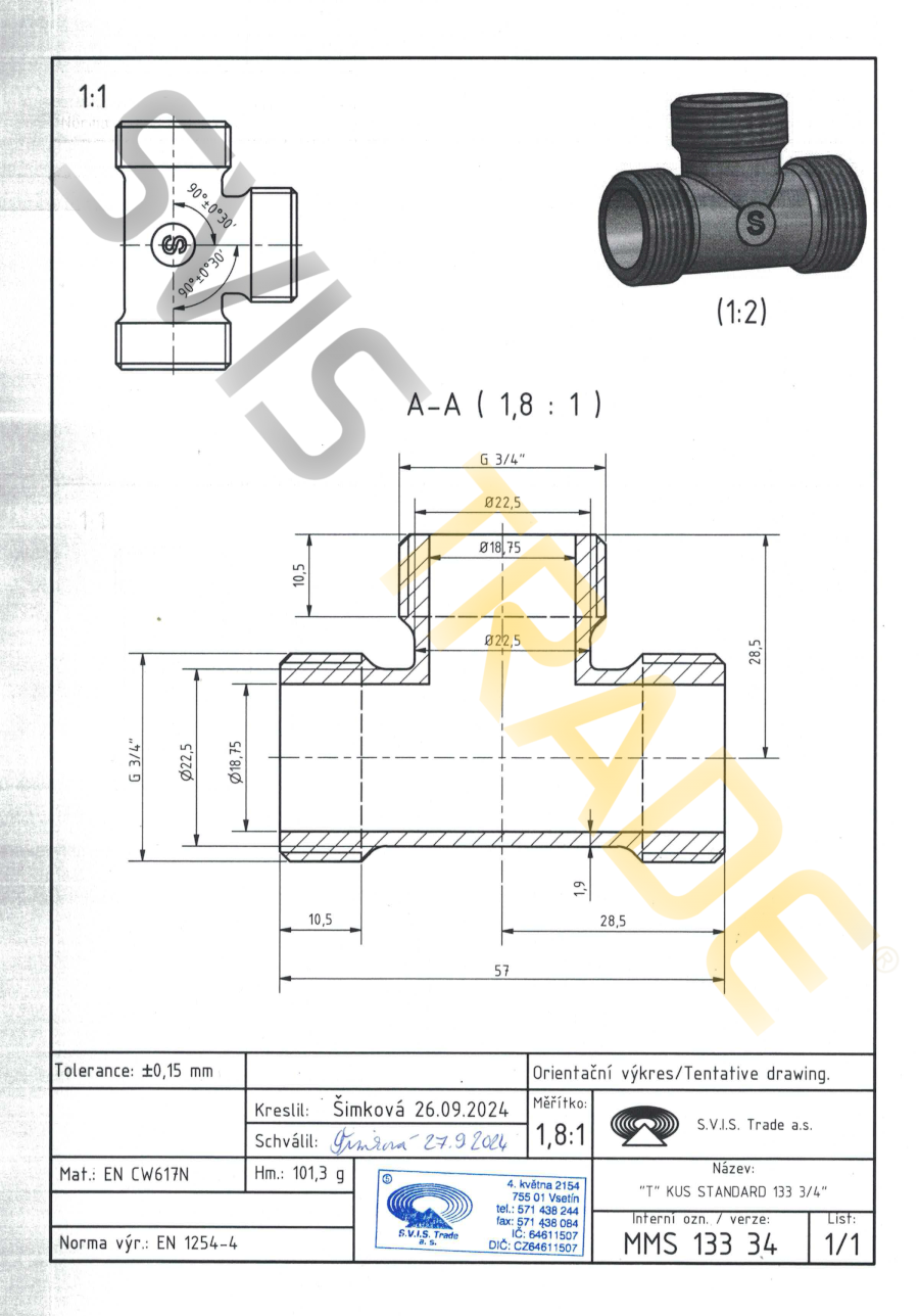 S.V.I.S. Trade a.s. - český výrobce fitinek je držitelem certifikátů ISO 9001, ISO 14001, OHSAS 18001. Na mosazné fitinky se vztahuje pojištění za škody pro území celé EU.