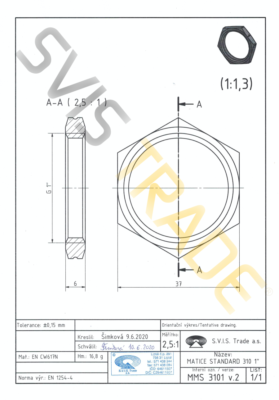 S.V.I.S. Trade a.s. - český výrobce fitinek je držitelem certifikátů ISO 9001, ISO 14001, OHSAS 18001. Na mosazné fitinky se vztahuje pojištění za škody pro území celé EU.