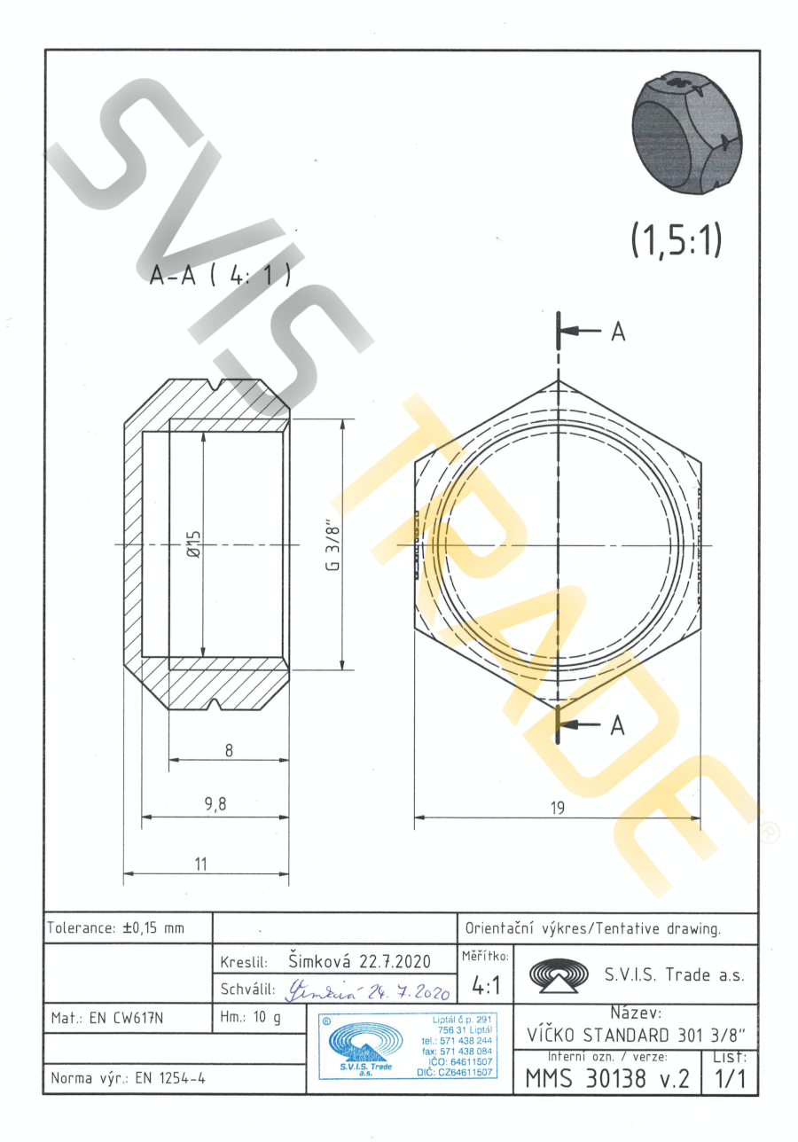 S.V.I.S. Trade a.s. - český výrobce fitinek je držitelem certifikátů ISO 9001, ISO 14001, OHSAS 18001. Na mosazné fitinky se vztahuje pojištění za škody pro území celé EU.
