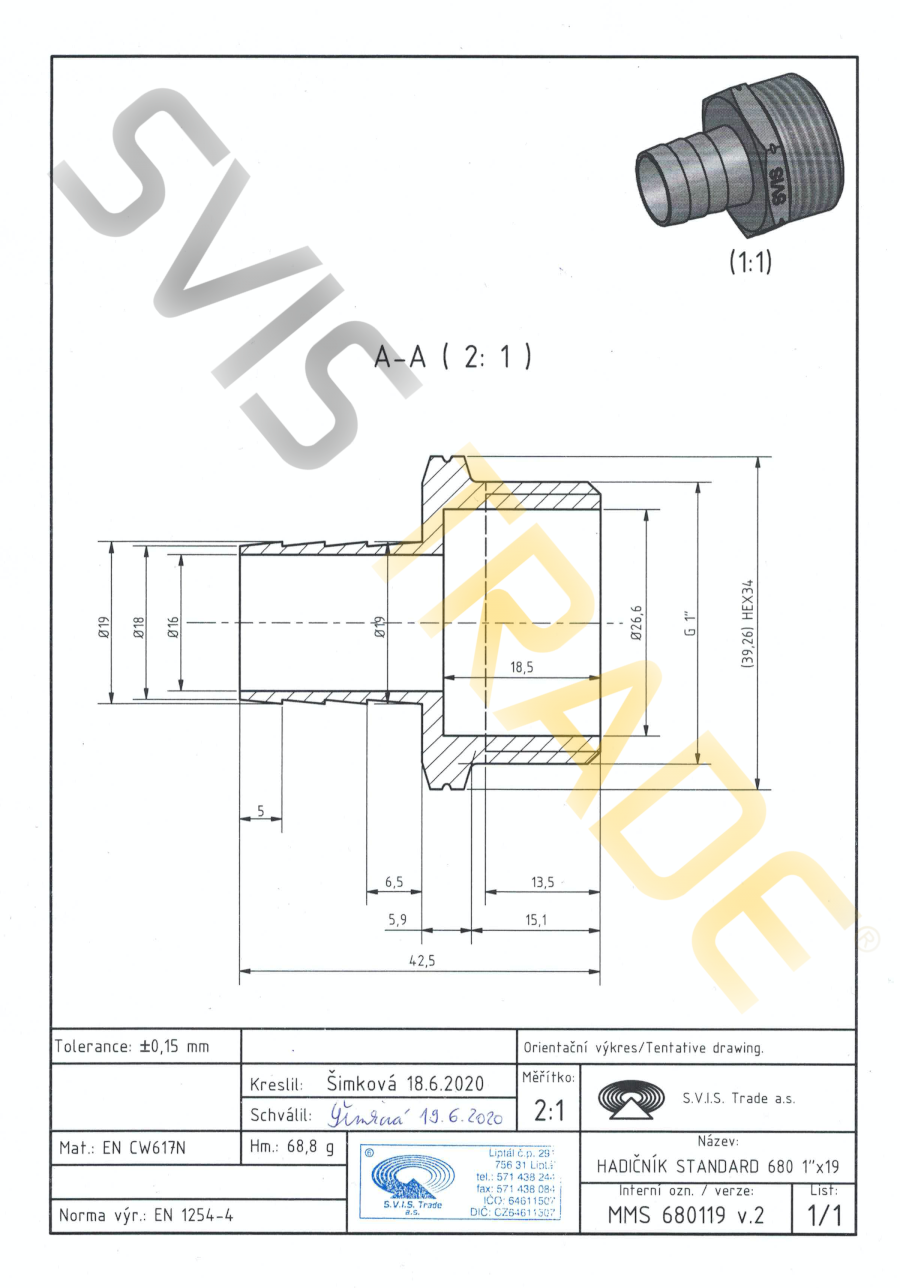 S.V.I.S. Trade a.s. - český výrobce fitinek je držitelem certifikátů ISO 9001, ISO 14001, OHSAS 18001. Na mosazné fitinky se vztahuje pojištění za škody pro území celé EU.