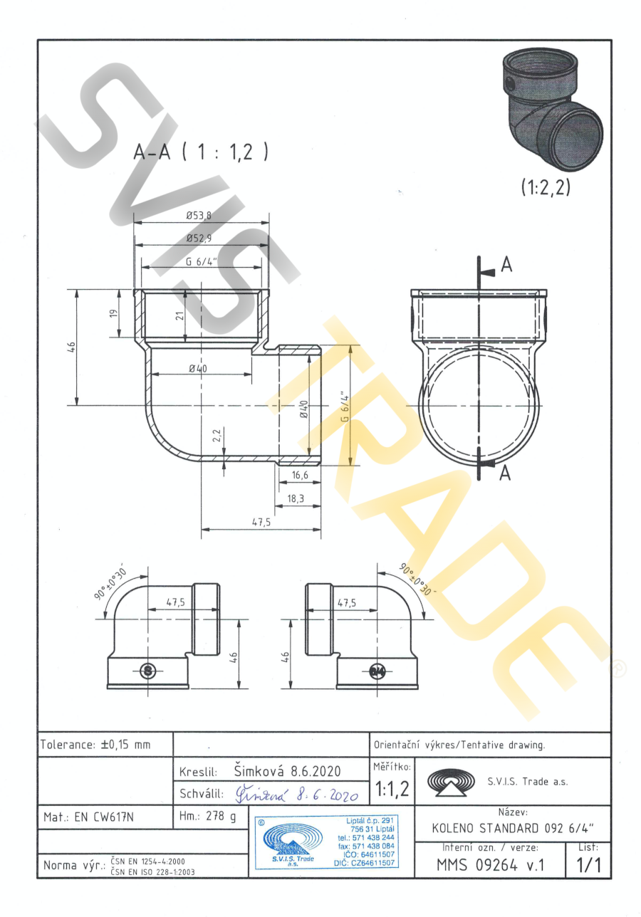 | Norme: | ČSN EN 10242, ČSN ISO 7-1 |
