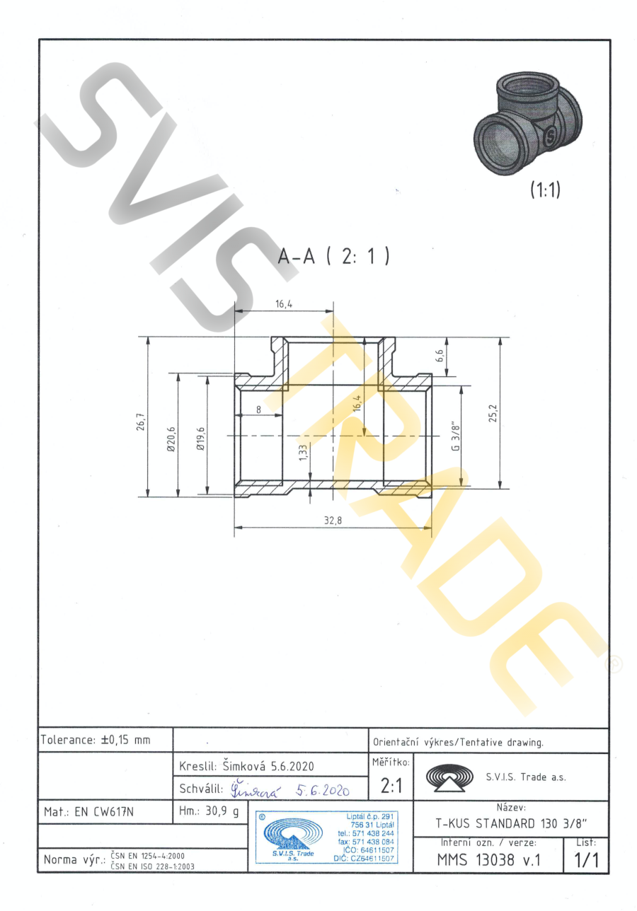 | Norme: | ČSN EN 10242, ČSN ISO 7-1 |