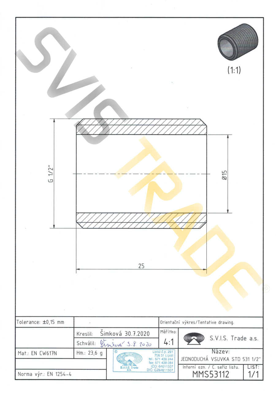 | Norme: | ČSN EN 10242, ČSN ISO 7-1 |