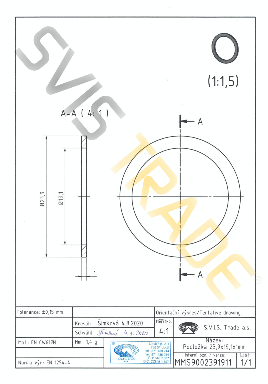 Mesingani podložak 23,9x19,1x1,0 mm 900 STANDARD