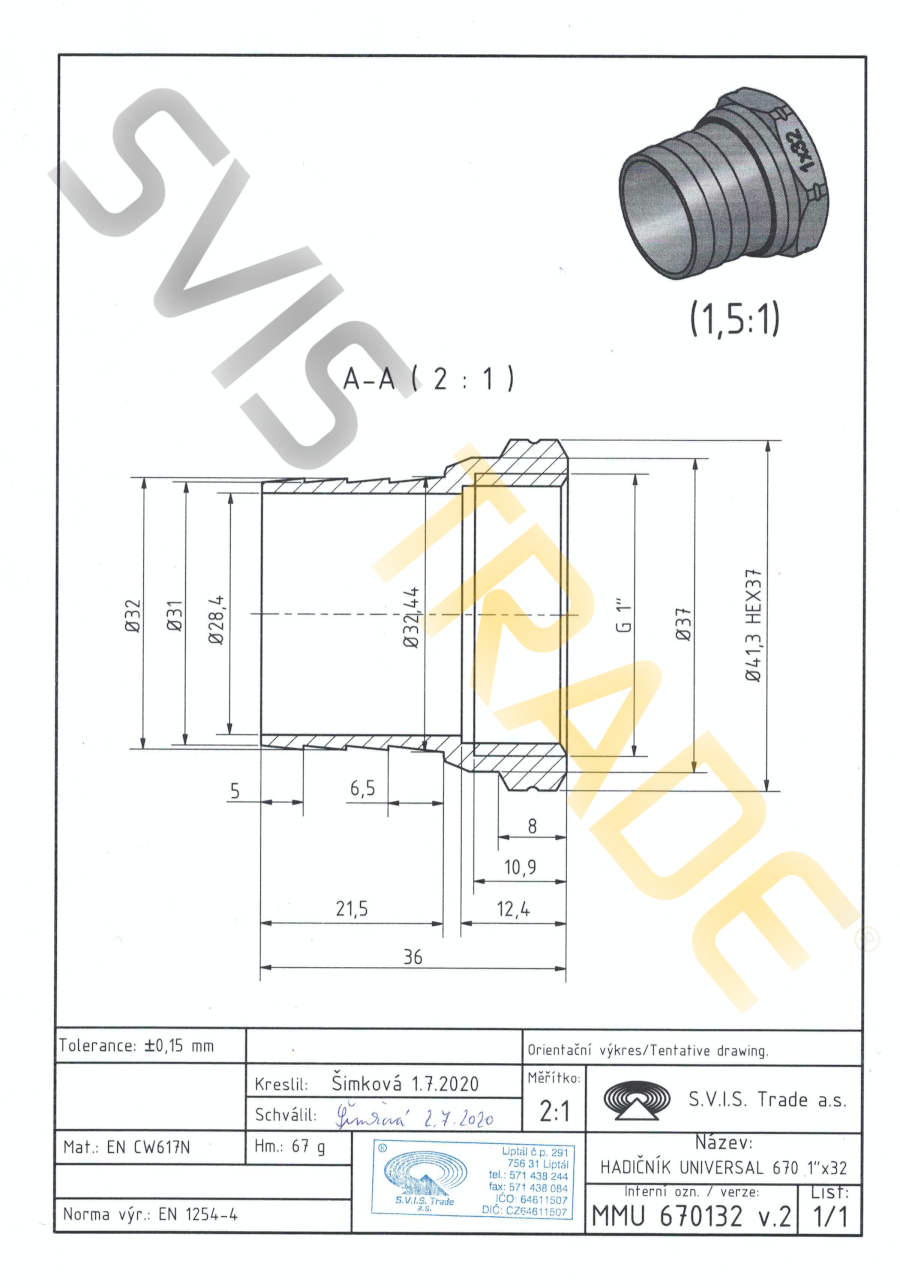 | Norme: | ČSN EN 10242, ČSN ISO 7-1 |