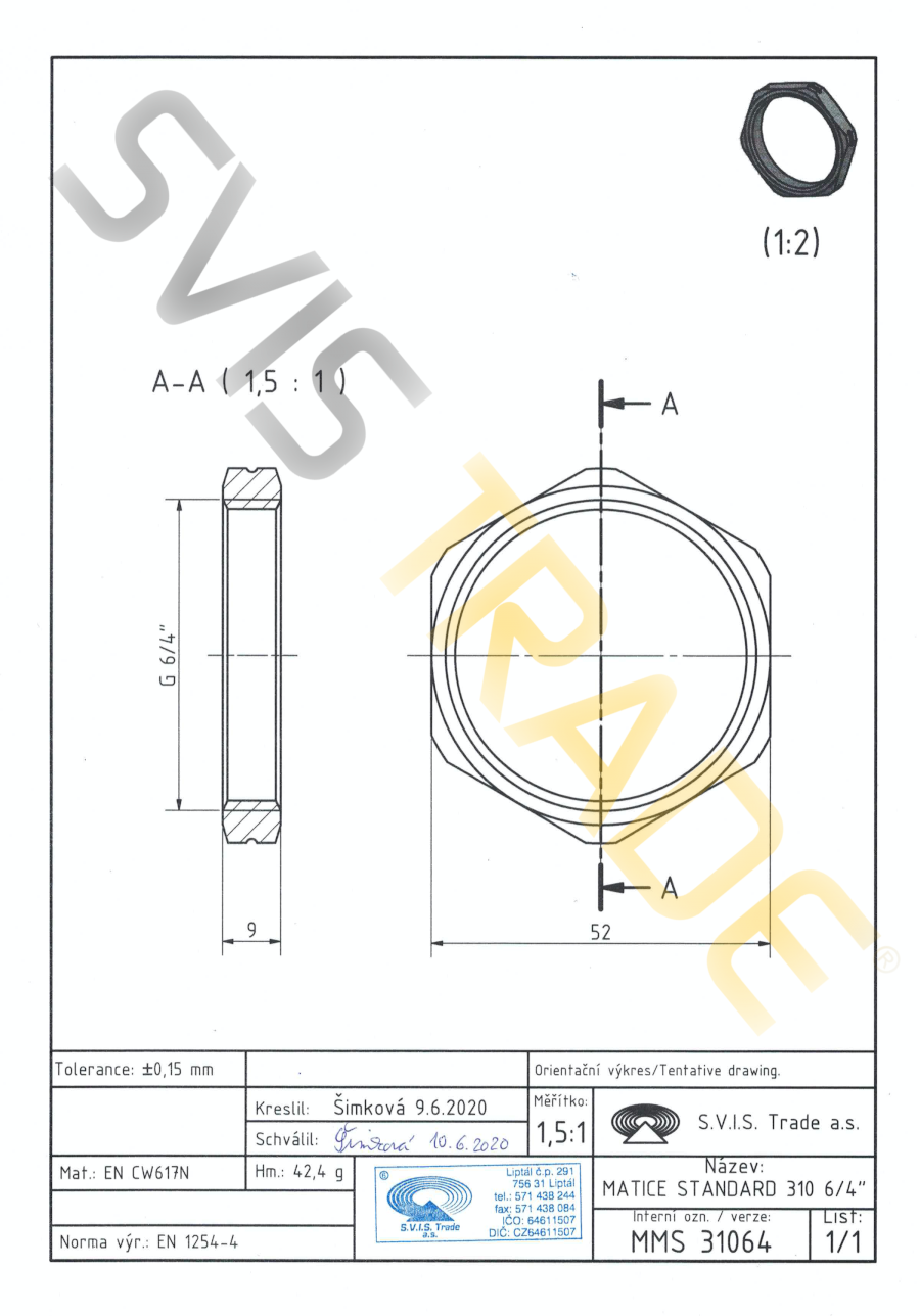 A sárgaréz idomok a CW617N minőségi réz anyagból vannak előállitva.