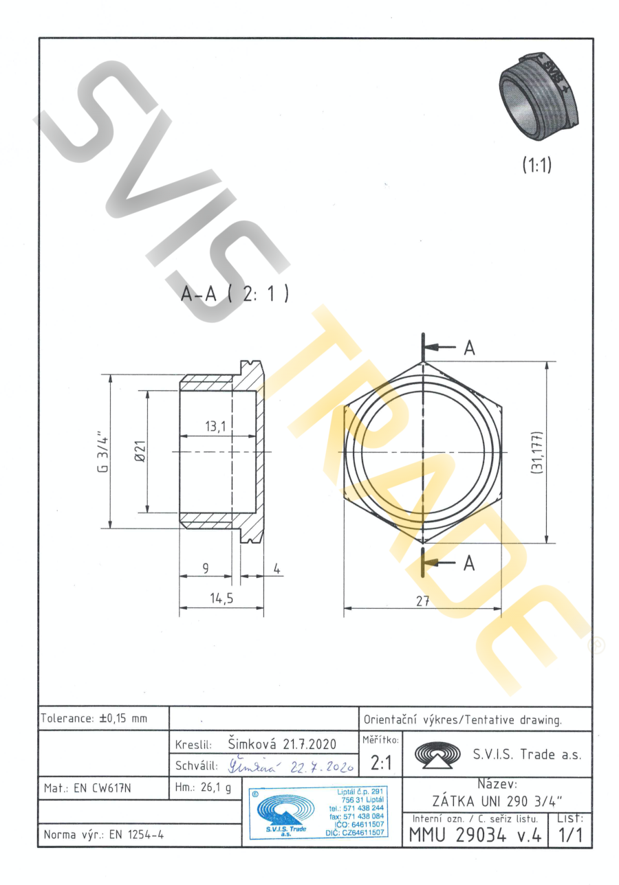 Sárgaréz idom CW617N. ISO 228-1 as norma szerint meghatározott menetes kapcsolásokra alkalmas. Felületi kezelés nélkül.