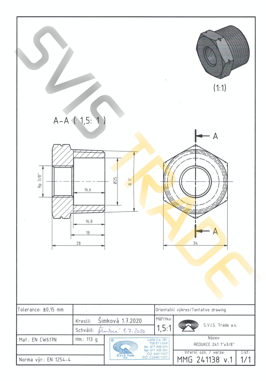 | Normy: | ČSN EN 10242, ČSN ISO 7-1 |