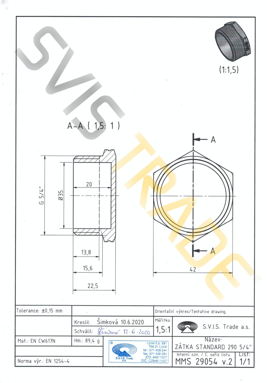 Mosiężny korek M - 290 MMS-STANDARD. Wyprodukowana według normy EN 1254-4 - gwintowana mosiężna złączka. Bez obróbki powierzchniowej. S.V.I.S Trade-czeski producent kształtek jest posiadaczem certyfikatów ISO 9001,ISO 14001,OHSAS 18001. Na mosiężne kształtki stosujemy ubezpieczenie szkody na całym terytorium EU. Zaprojektowane do dystrybucji wody,wody pitnej,powietrza,nieabrazyjne i nie agresywne media do dopuszczalnego ciśnienia 1,6 MPa i temperatury od -20°C do 120 °C, z koniecznością uniknięcia zamrożenia mediów. Seria kształtek STANDARD-spełnia wyższe wymagania dla połączeń gwintowanych. Mosiężne kształtki są produkowane z mosiądzu CW617 N. Jako materiał uszczelniający do montażu złączek mosiężnych zaleca się uzywanie taśmy teflonowej lub przewodu teflonowego. Producent NIE ZALECA używania konopi jako materiał uszczelniający. Zalecenia dla instalacji: dystrybucja wody,dystrybucja wody pitnej,dystrybucja ciepła,powietrza.