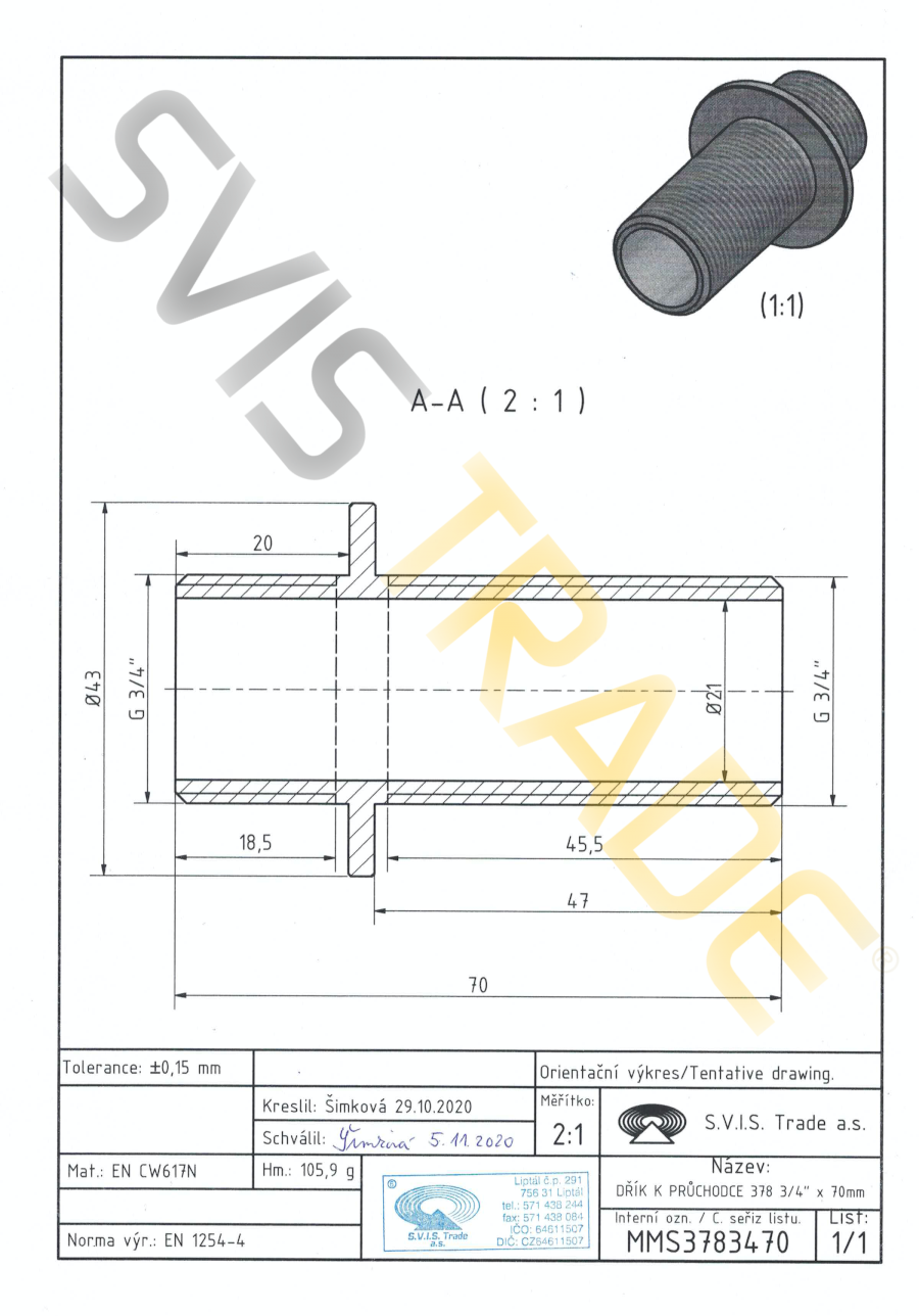 S.V.I.S. Trade a.s. - český výrobce fitinek je držitelem certifikátů ISO 9001, ISO 14001, OHSAS 18001. Na mosazné fitinky se vztahuje pojištění za škody pro území celé EU.