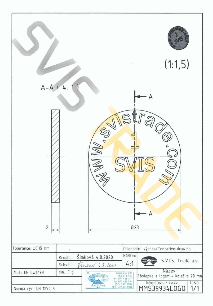 S.V.I.S. Trade a.s. - český výrobce fitinek je držitelem certifikátů ISO 9001, ISO 14001, OHSAS 18001. Na mosazné fitinky se vztahuje pojištění za škody pro území celé EU.