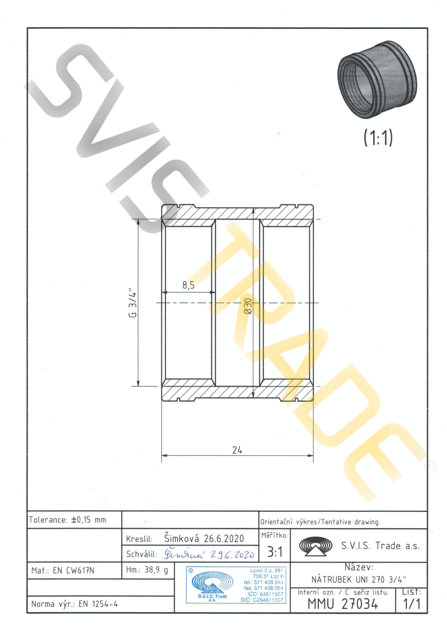 S.V.I.S Trade-czeski producent kształtek jest posiadaczem certyfikatów ISO 9001,ISO 14001,OHSAS 18001. Na mosiężne kształtki stosujemy ubezpieczenie szkody na całym terytorium EU.
