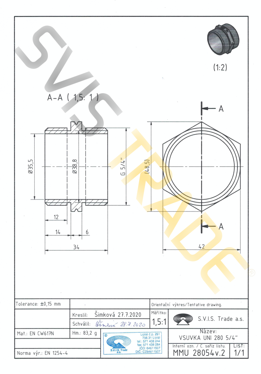 Mosiężny nypel MM - 280 MMU-UNIVERSAL. Wyprodukowana według normy EN 1254-4 - gwintowana mosiężna złączka. Bez obróbki powierzchniowej. S.V.I.S Trade-czeski producent kształtek jest posiadaczem certyfikatów ISO 9001,ISO 14001,OHSAS 18001. Na mosiężne kształtki stosujemy ubezpieczenie szkody na całym terytorium EU. Zaprojektowane do dystrybucji wody,wody pitnej,powietrza,nieabrazyjne i nie agresywne media do dopuszczalnego ciśnienia 1,6 MPa i temperatury od -20°C do 120 °C, z koniecznością uniknięcia zamrożenia mediów. Seria kształtek UNIVESRAL - spełniają standardowe wymagania dotyczące połączeń gwintowych Mosiężne kształtki są produkowane z mosiądzu CW617 N. Jako materiał uszczelniający do montażu złączek mosiężnych zaleca się uzywanie taśmy teflonowej lub przewodu teflonowego. Producent NIE ZALECA używania konopi jako materiał uszczelniający. Zalecenia dla instalacji: dystrybucja wody,dystrybucja wody pitnej,dystrybucja ciepła,powietrza.