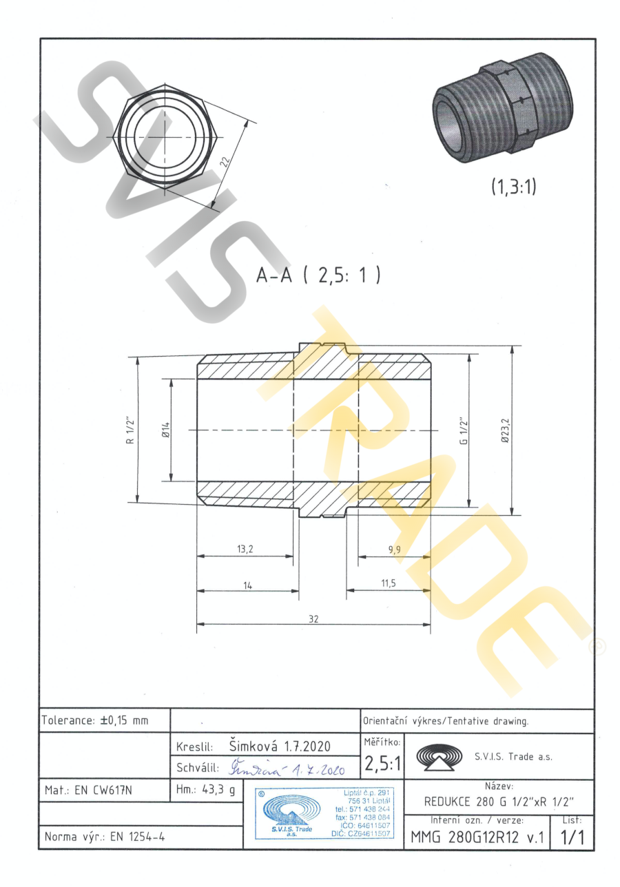 | Norme: | ČSN EN 10242, ČSN ISO 7-1 |