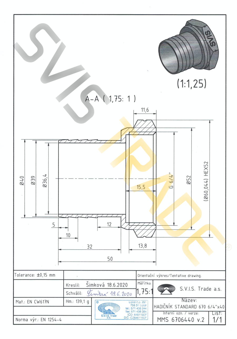 | Norme: | ČSN EN 10242, ČSN ISO 7-1 |