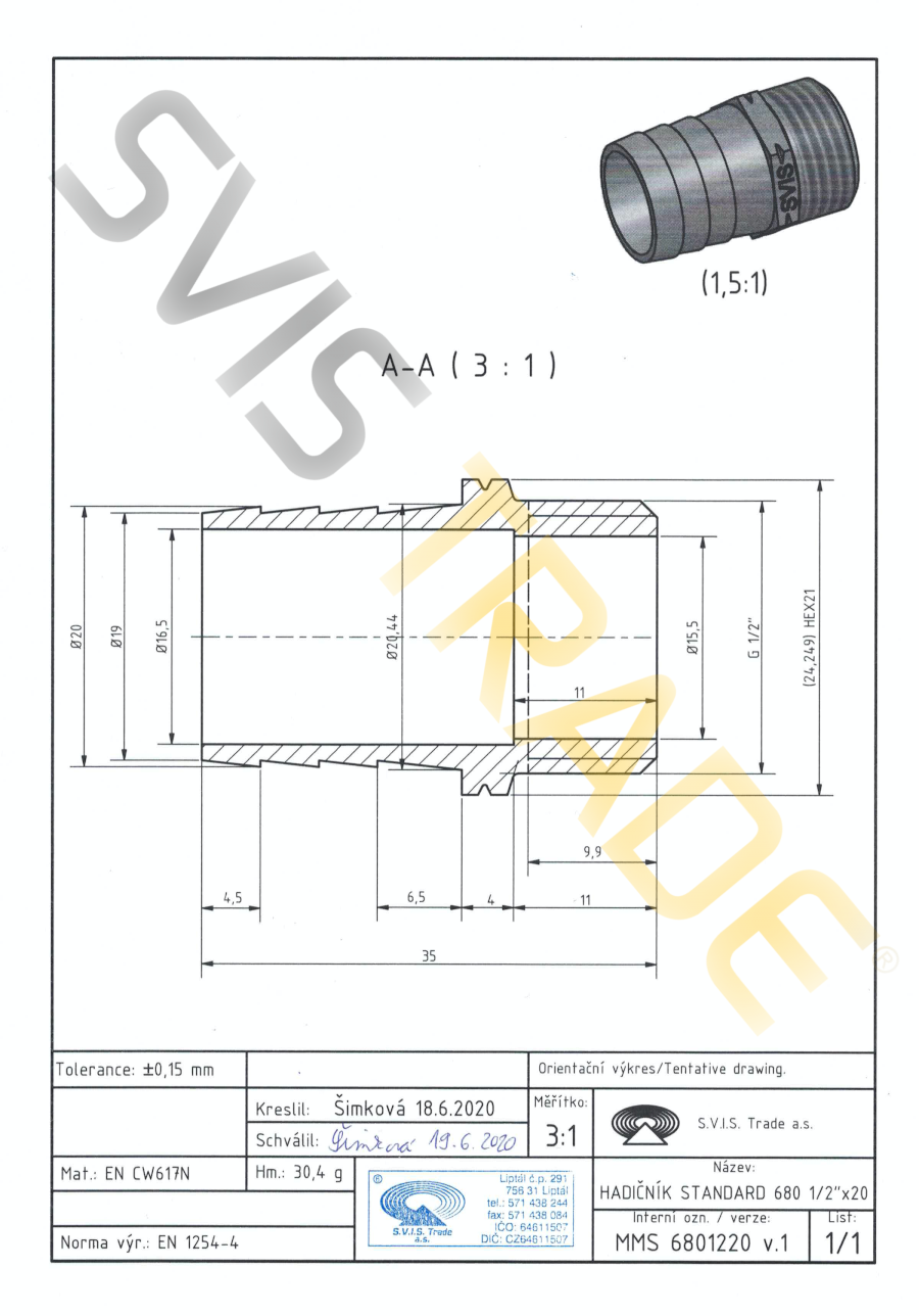 | Norme: | ČSN EN 1254-4, ČSN EN ISO 228-1 |