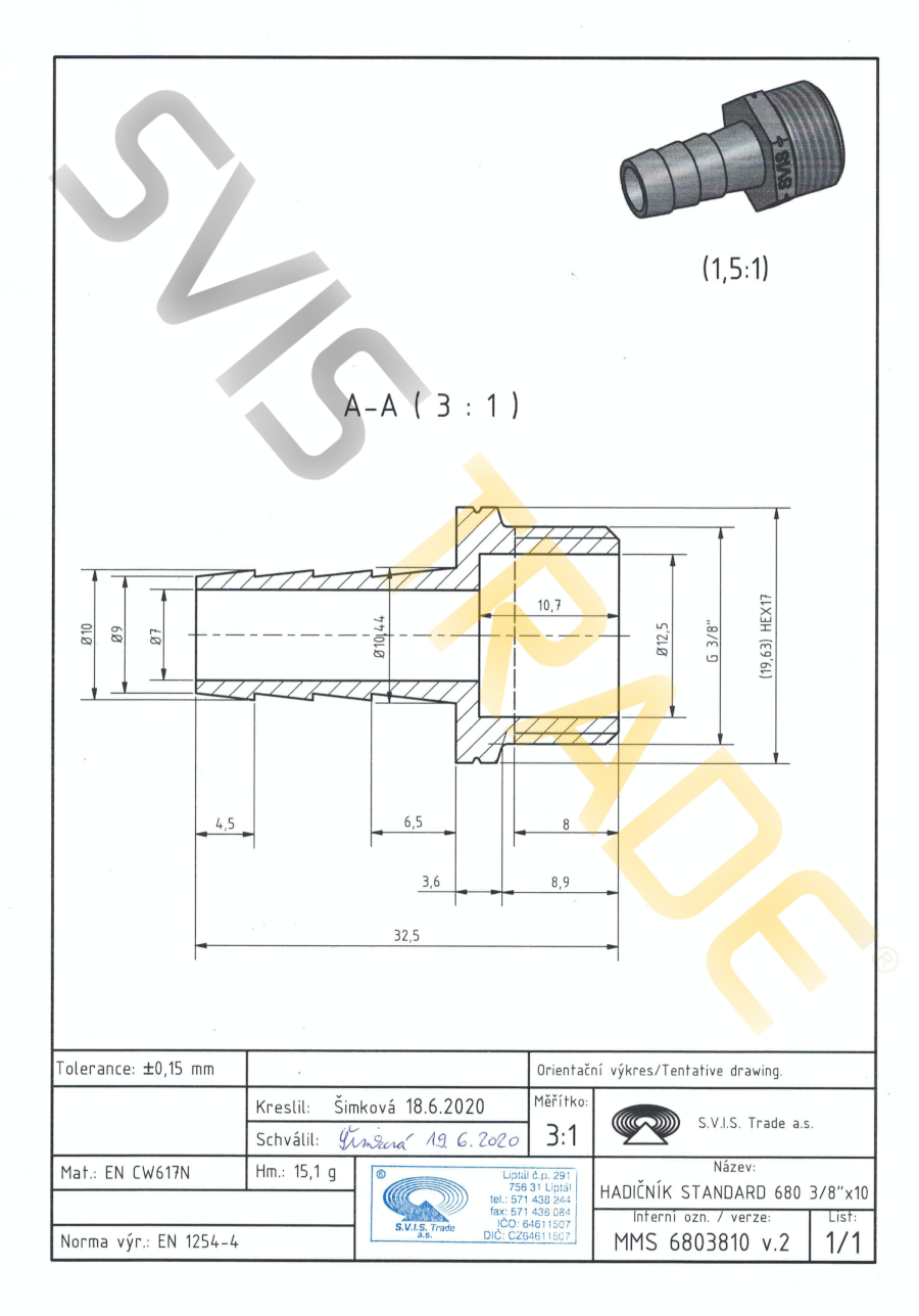 | Norme: | ČSN EN 1254-4, ČSN EN ISO 228-1 |