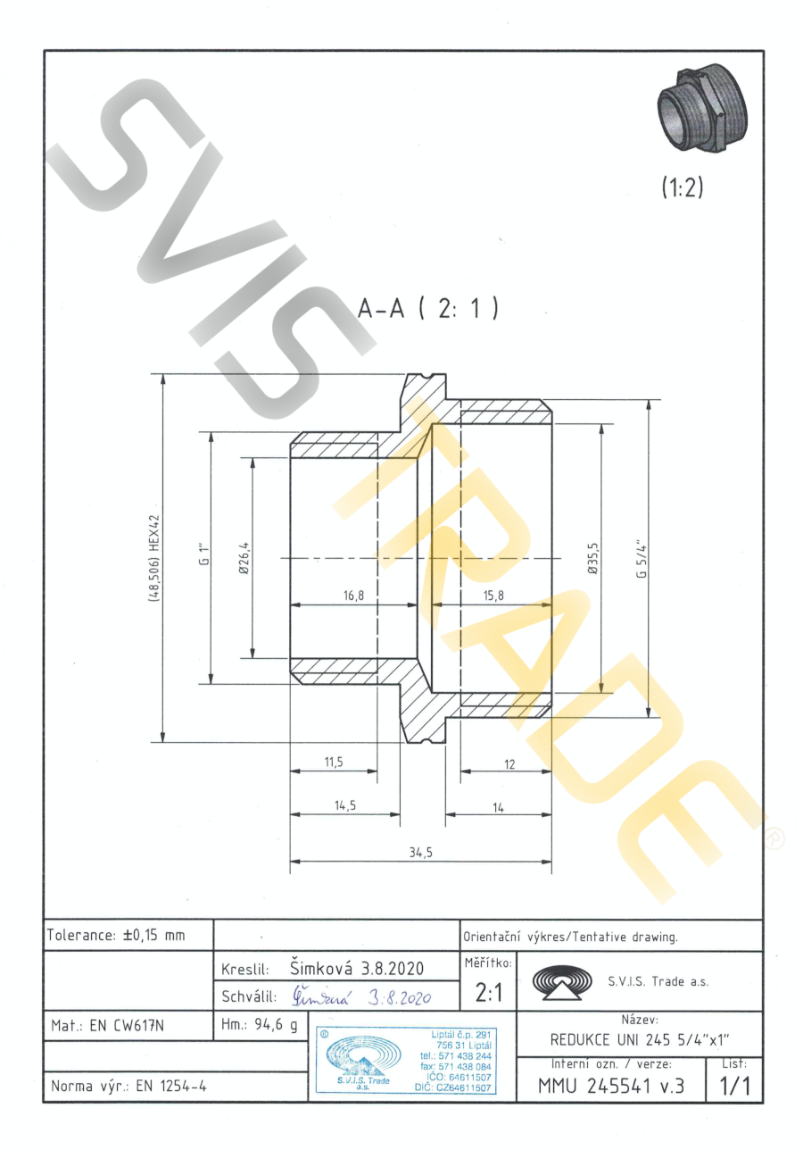 | Norme: | ČSN EN 10242, ČSN ISO 7-1 |